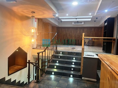 Dispone de dos plantas; en planta calle tiene 128m distribuidos en dos niveles y zonas: la zona de barra tiene 54m y la zona de comedor tiene 44m, este comedor tiene luz natural que entra por claraboyas.
