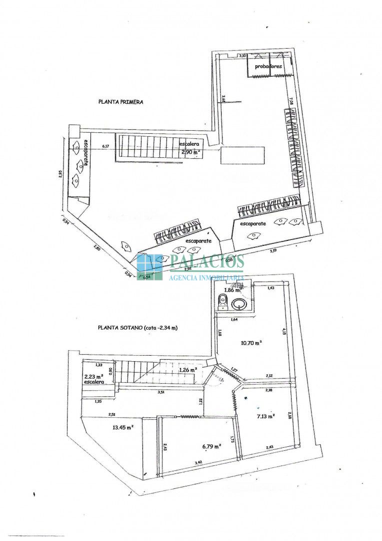 Escaparate a dos calles, uno de 7m y otro de 3m. altura del local 3,5m