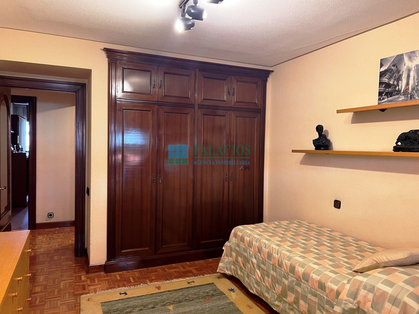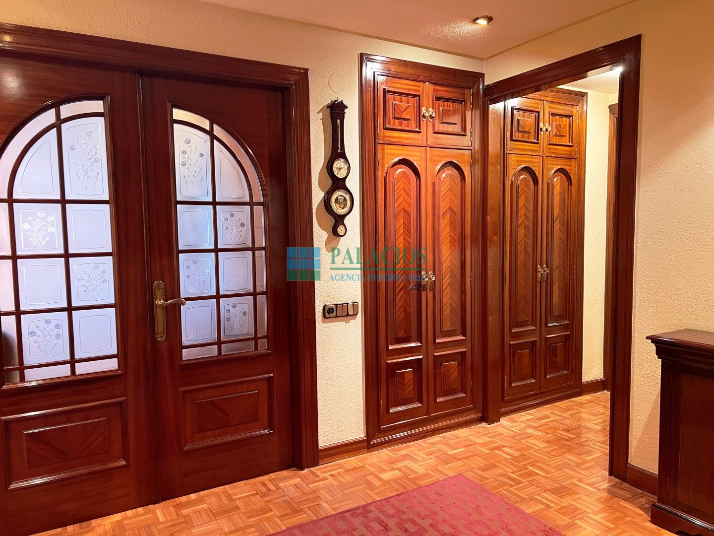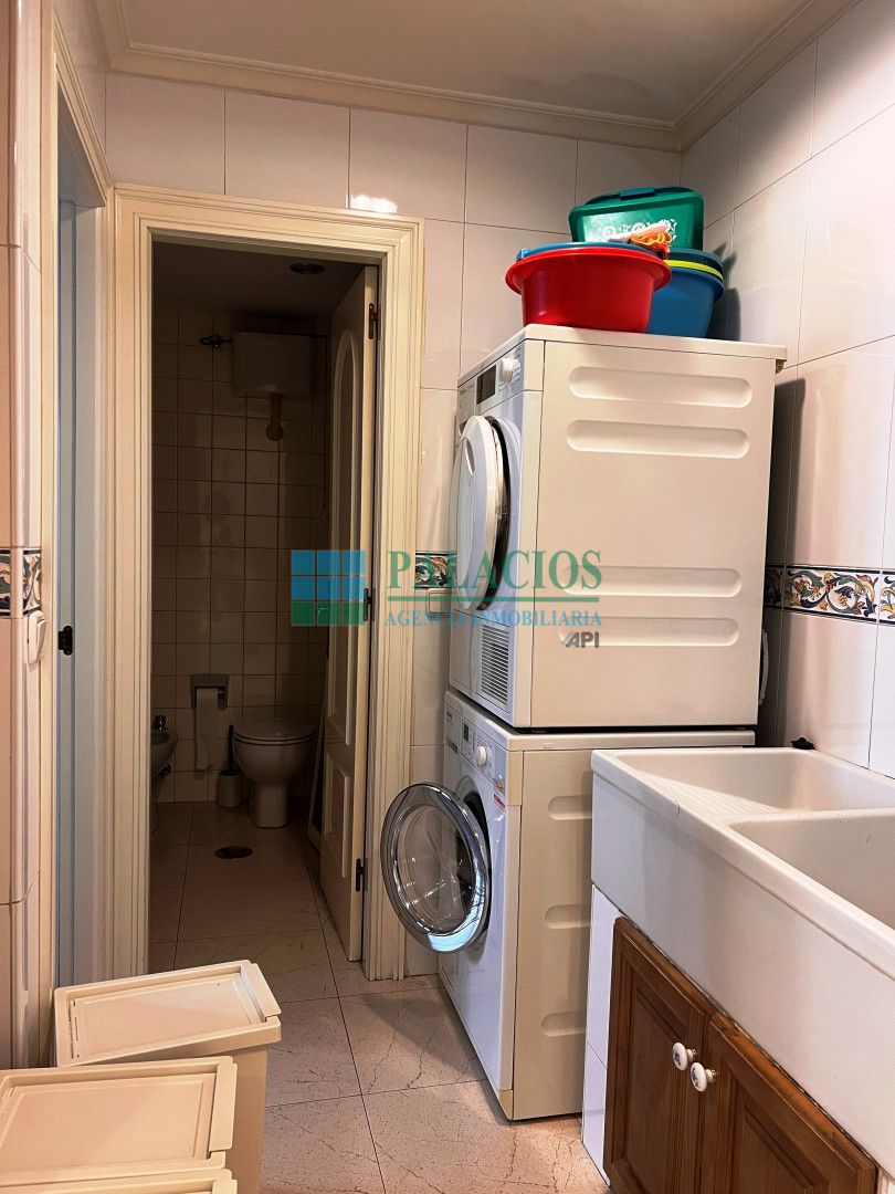 Distribuido en amplio hall con armarios empotrados, salón de 28m, amplia cocina con zona de office, lavadero, despensa, dormitorio de servicio y aseo; dispone de su propio acceso independiente. Dispone además de otros cuatro dormitorios dobles con armarios empotrados, dos baños, uno de ellos incorporado en el dormitorio principal, este dormitorio tiene un balcón a la calle.