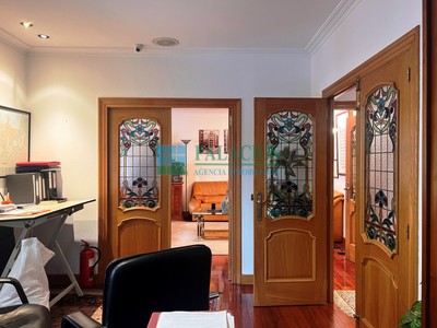Distribuido en salón y despacho exteriores; un aseo de cortesía; 4 dormitorios, dos de ellos con baño incorporado, otro baño más (todos los baños tienen ventana); armarios empotrados en todas las habitaciones y en el pasillo; la cocina es amplia y tiene despensa.